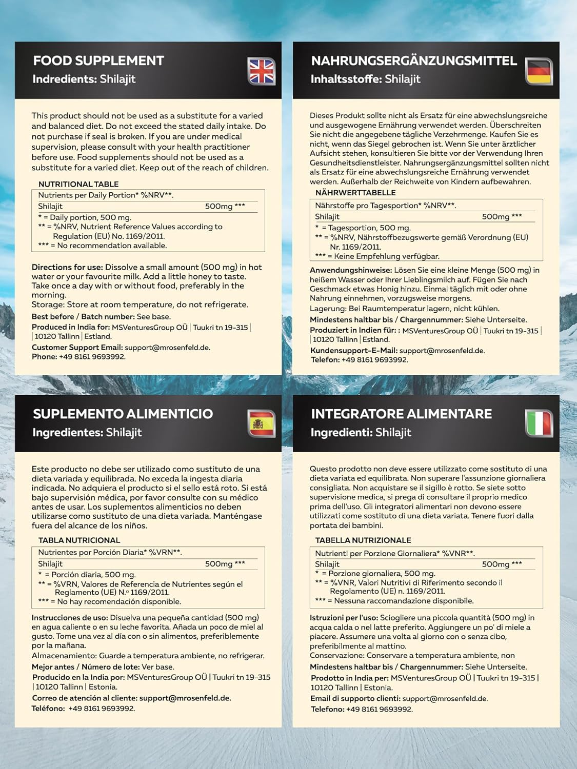 Unser Shilajit enthält mehr als 85 Mineralien und Fulvinsäure, die den Körper in vielerlei Hinsicht verbessern.